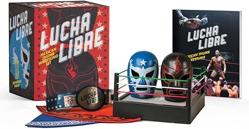 Thumb wrestling meets lucha libre with this unique kit that brings the competitive Mexican sport to enthusiasts all over the world!Known for its bold costumes and memorable masks, lucha libre, or professional Mexican wrestling, is the most popular sport in Mexico after soccer and has become an international pop culture phenomenom. Kit includes: Two 2-inch vinyl lucha masks that cover your thumbs Two decorative capes 2-1/2-inch Wrestling display ring 3-1/2-inch Championship belt 48-page book on the history of lucha libre and six luchador profiles